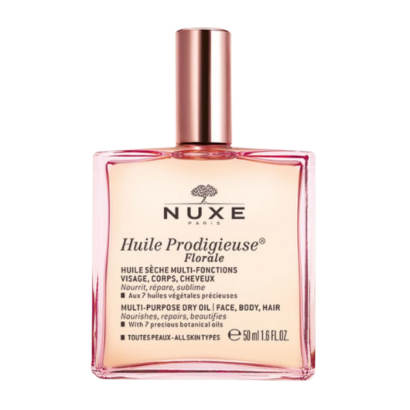 Huile sèche Nuxe Huile Prodigieuse Florale :sublime, nourrit et répare pour visage, corps et cheveux, avec un délicat parfum floral.