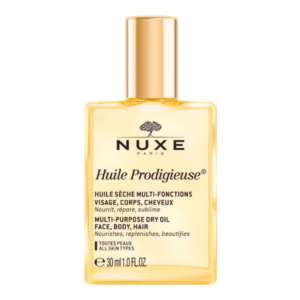 Nuxe Huile Prodigieuse Or 100ml est une huile sèche pailletée multi-fonctions pour visage, corps et cheveux. Elle illumine la peau avec de subtils reflets dorés, hydrate intensément et laisse un fini satiné sans effet gras. Son parfum envoûtant et sa texture sensorielle en font un soin iconique pour sublimer toutes les carnations.