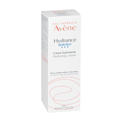 Grâce au toucher onctueux de cette crème riche, l’hydratation devient la base de la routine beauté de toutes les peaux sensibles déshydratées sèches à très sèches. Hydrance RICHE Crème hydratante leur apporte une recharge d’Eau thermale d’Avène pour offrir 24h d’hydratation. Sa texture riche et non collante laisse la peau souple et confortable, désaltérée tout au long de la journée, tandis que son parfum subtil réveille les sens. Également disponible avec protection UV SPF30 ou en version teintée BB.