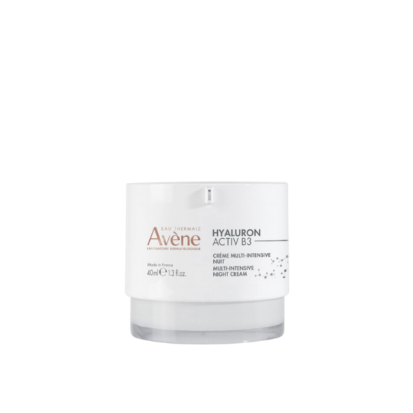 Avec l’âge tout s’accélère. Les cellules vieillissantes se propagent et la peau fonctionne au ralenti. Les laboratoires dermatologiques Avène créent la crème nuit Hyaluron Activ B3 contenant du rétinal, de l’acide hyaluronique pur, de l’extrait d’Haritaki et du niacinamide pour agir sur la cause du vieillissement et prolonger la vie des cellules*. Dès le réveil, la peau est défroissée. Dès 15 jours, elle est réparée, plus ferme et les rides sont comblées**. Véritable soin cocooning pour la nuit, sa texture délicatement parfumée apporte du confort à la peau, sans fini gras. Sa teinte légérement orangée est liée à la présence de rétinal.