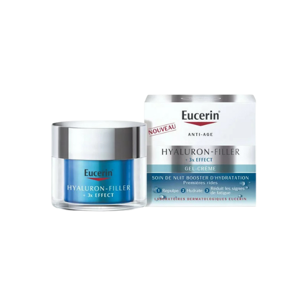 EUCERIN HYALURON FILLER + 3 EFFECT GEL CR SOIN NUIT BOOSTER D’HYDRATATION 50ML + TROUSSE CADEAU