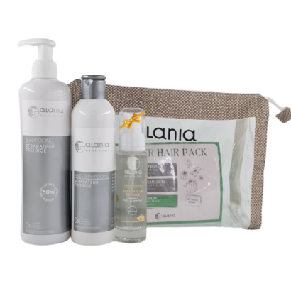 Le Pack Alania Repair Hair est un soin capillaire complet qui répond aux besoins des cheveux fragiles, cassants ou abîmés. Ce pack innovant comprend :