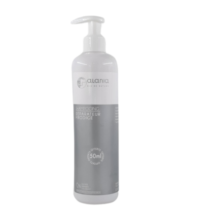 Shampoing Réparateur Prodige (400ml) : Formulé pour redonner éclat et vitalité aux cheveux, il nettoie en profondeur tout en réparant les fibres capillaires. Sa composition enrichie en huile de noix de coco, extrait de thé vert, et acide hyaluronique nourrit, hydrate et revitalise les cheveux, leur offrant une brillance longue durée.