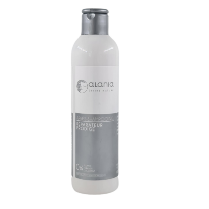 Shampoing Réparateur Prodige (400ml) : Ce shampoing nettoie délicatement les cheveux tout en les nourrissant grâce à l’huile de noix de coco, l’extrait de thé vert et l’acide hyaluronique. Il redonne de la brillance et de la vitalité aux cheveux, les laissant doux et soyeux.