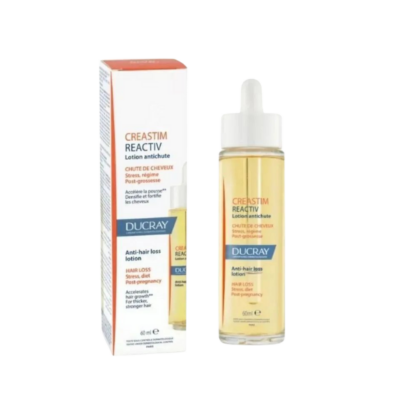 DUCRAY CREASTIM REACTIV est un soin capillaire qui stimule la pousse* et freine la chute. Indiqué en cas de chute de cheveux réactionnelle + Un shampooing traitant qui contribue à ralentir la chute des cheveux offert